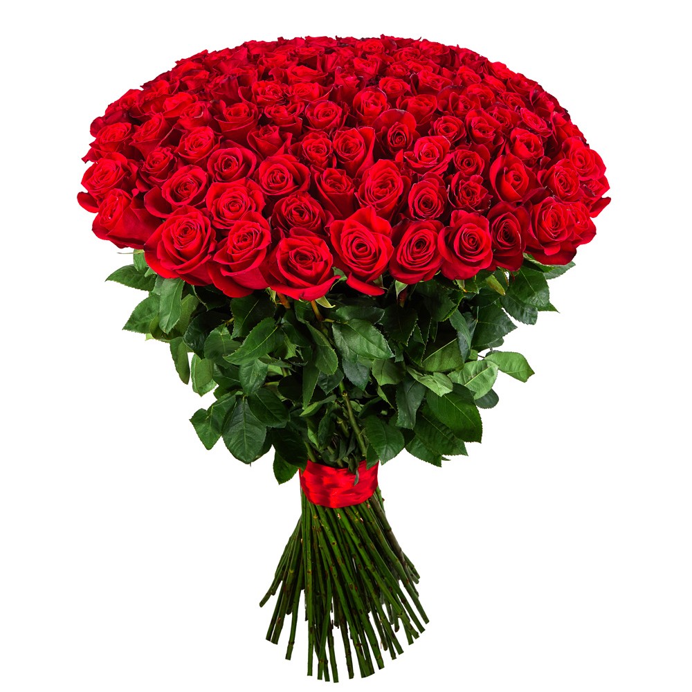 Pour tous les amoureux qui aiment passionnément, à la folie. Ce bouquet rond somptueux de 50,75 ou 100 tiges de roses rouges Freedom à gros bouton est une pure merveille.